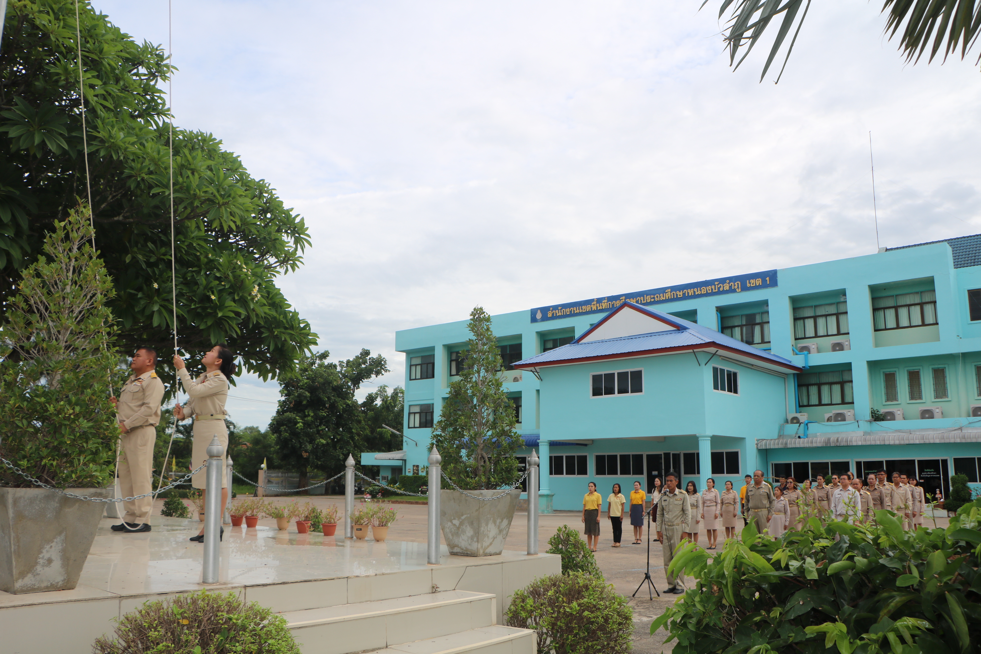 เวลา 08.00 น.(22 กรกฎาคม 2562) นายเกิดมี สอนเมือง ผอ.สพป.หนองบัวลำภู เขต 1 และนายวรรณชัย บุสนาม รอง ผอ.สพป.หนองบัวลำภู เขต 1 นำข้าราชการครูและบุคลากรทางการศึกษา พนักงาน ลูกจ้างในสังกัด แสดงออกถึงความรักชาติ ศาสนา พระมหากษัตริย์ ด้วยการยืนตรงเคารพธงชาติ ร่วมร้องเพลงชาติไทย สวดมนต์ไหว้พระ ซึ่งเป็นกิจกรรมทีทำอย่างต่อเนื่อง เพื่อเสริมสร้างคุณธรรม จริยธรรม ปลูกฝังค่านิยมความรักชาติ แก่บุคลากรในสังกัด และ บริเวณหน้าเสาธง สพป.หนองบัวลำภู เขต 1 และในโอกาสนี้ ผอ.สพป.หนองบัวลำภู เขต 1 ได้พบปะและแจ้งข้อราชการอาทิ การร่วมงานพิธีวันเฉลิมพระชนมพรรษาฯ, การร่วมการแข่งขันกีฬาอาวุโสแห่งชาติ ฯลฯ